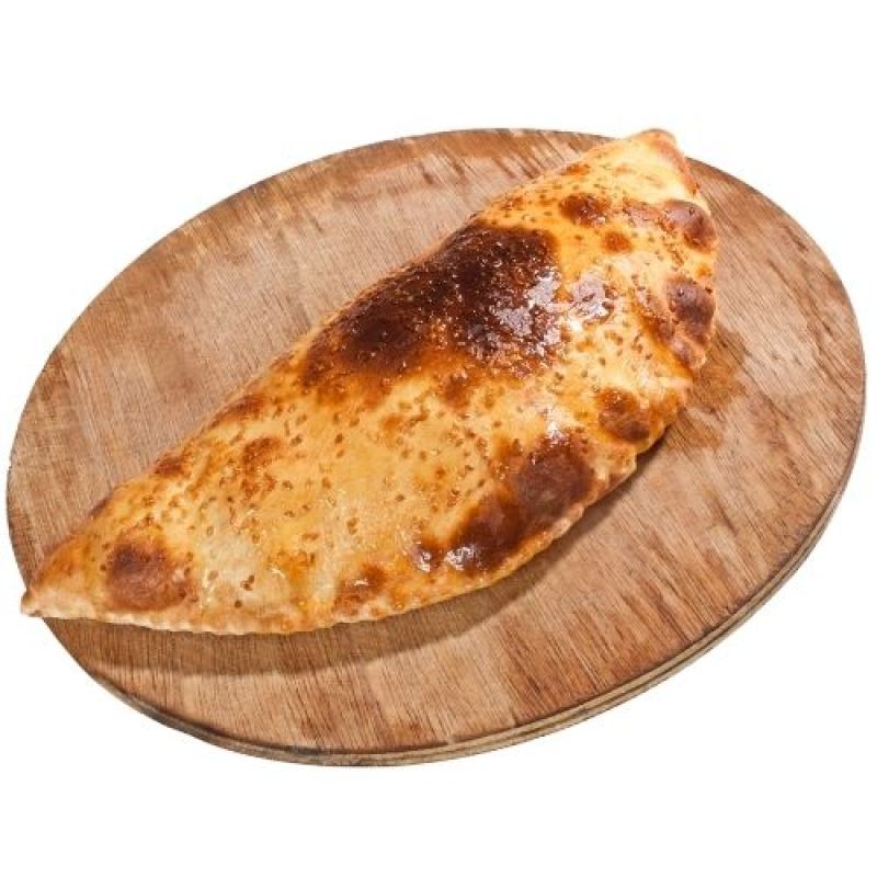 dubbelgevouwen en gevuld met tomatensaus, kaas, ui, champignons, paprika, artisjok
