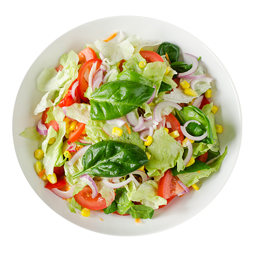 sla, ui, tomaat, witte kool, rode kool, olijven, rucola, balsamico