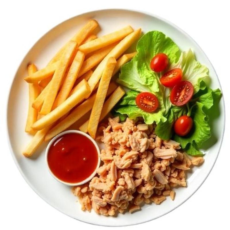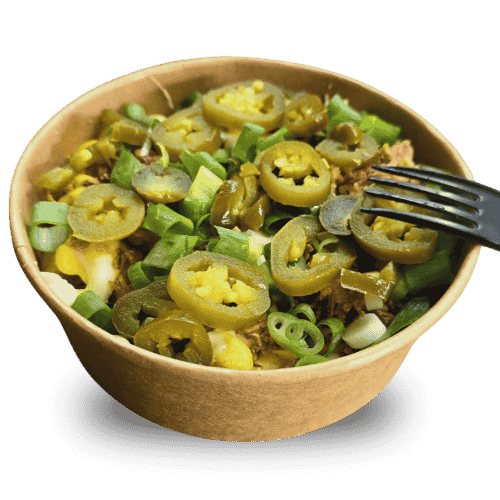 sla, ui, tomaat, witte kool, rode kool, olijven, rucola, balsamico, tonijn