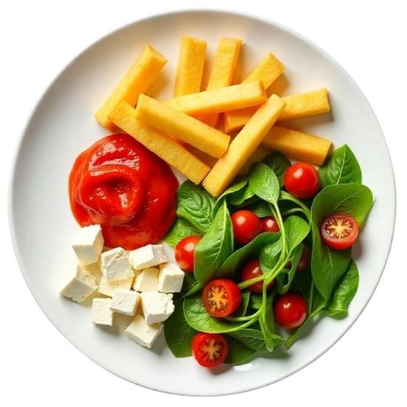 sla, ui, tomaat, witte kool, rode kool, olijven, rucola, balsamico, feta