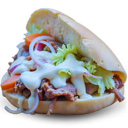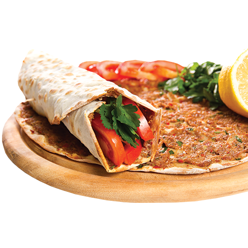 dubbelgevouwen en gevuld met tomatensaus, kaas, ui, champignons, paprika, feta, kip, kebap